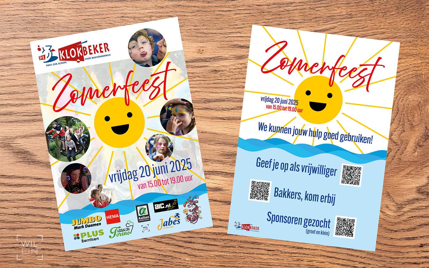 Diverse uitingen voor het Zomerfeest van de Klokbeker. Zoals een banner, posters, flyers, social media posts.